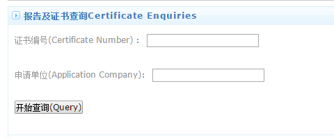 進(jìn)入以下頁面, 在頁面中輸入證書或報(bào)告編號(hào)和申請(qǐng)公司即可查詢: