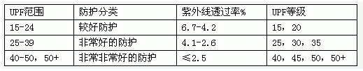 表3UPF的數(shù)值及防護(hù)等級(jí)[3]