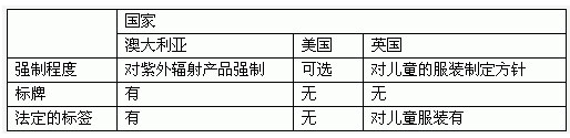 表2 澳大利亞、美國(guó)和英國(guó)對(duì)抗紫外線JZ產(chǎn)品的強(qiáng)制要求和程度