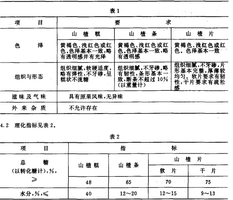 本標準適用于以山植(紅果)、白砂糖為原料,經(jīng)煮制、打漿、成型或干燥等工藝加工制成的山植糕、條、片。